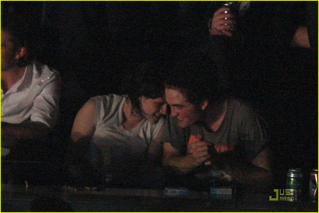 "Robert entrou super escondido". Um espectador diz People,acrescentando Stewart 19 anos e Pattison, 23 anos. Stewart passou despercebida pelos fãs durante toda a noite.Claramente, Robert Pattinson e Kristen Stewart foram no show de Bobby Long, mas deixou o local antes do final do show e pegaram um táxi que estavam esperando.